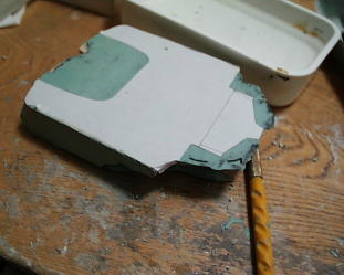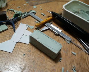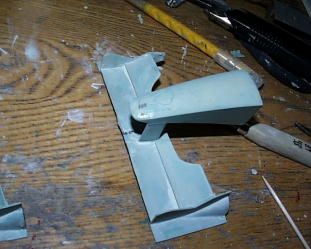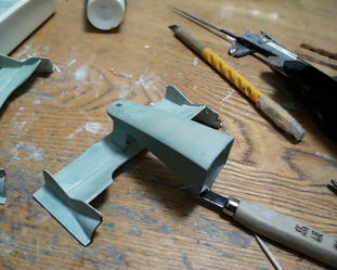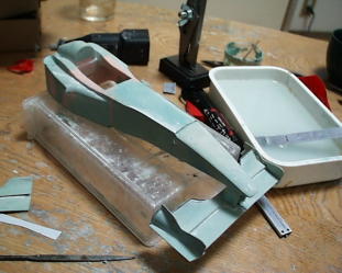 フラップもポリパテ。右の画像の型紙解るかな?