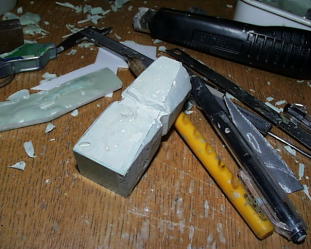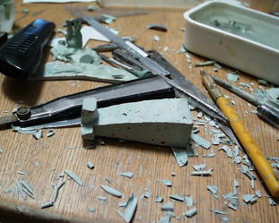 ノーズに下書き。線に沿って削ります。削って所に消えてしまって線を追加。
