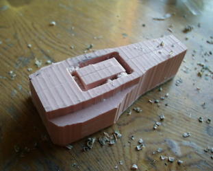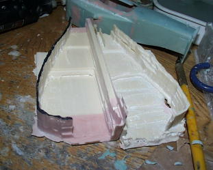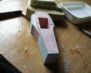 カウル編開始!重いので最初に中をくり抜きます。ステカで切った図面を貼って上面出します。
